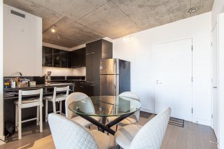 Enjoy elegant 2-bedroom condo in Lowney sur Ville 4 featuring an open-concept kitchen, dining, and living area. Enjoy a spacious balcony with unobstructed views. Includes storage locker and parking. Ideally located near bike paths, commuter train, highway, hospital, metro, parks, public transit, and universities.